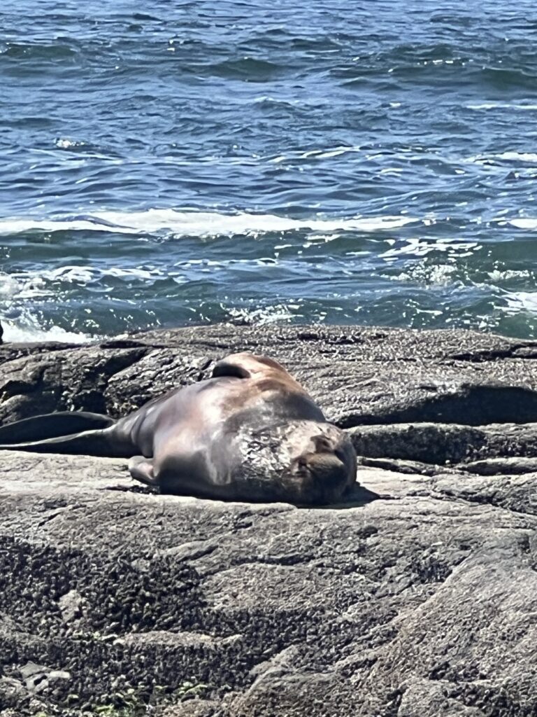 Et non, ce n’était pas l’effet de ce cocktail incroyable …pendant l’apéritif, un lion de mer est venu s’échouer tranquillement sur la plage, juste sous nos yeux comme s’il avait décidé de partager ce moment avec nous.