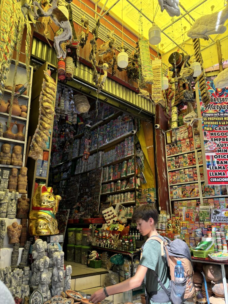 Notre première découverte fut le Mercado de las Brujas, le marché aux sorcières, une vraie caverne d’Alibaba, et sa célèbre rue aux parapluies la « calle de las Brujas ». Plutôt tranquille le dimanche, nous n’avons pas croisé de chamans ni de diseuses de bonne aventure. Mais nous avons beaucoup appris sur les rituels andins et les mythes locaux. Entre potions, amulettes et plantes médicinales, on plonge dans un monde où la spiritualité est omniprésente, héritée des traditions incas.