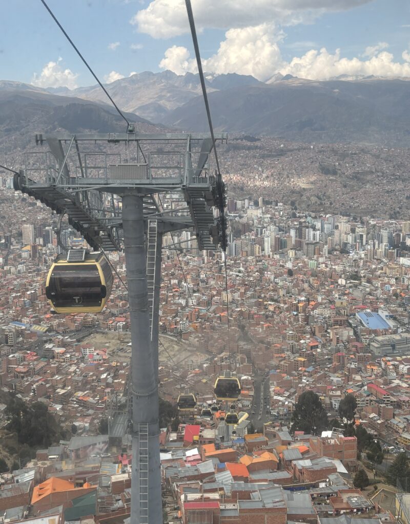 Suspendus entre ciel et montagnes, nous avons pu prendre la mesure de l’immensité de La Paz et observer les contrastes saisissants entre la ville basse et El Alto, entre quartiers anciens et modernes.