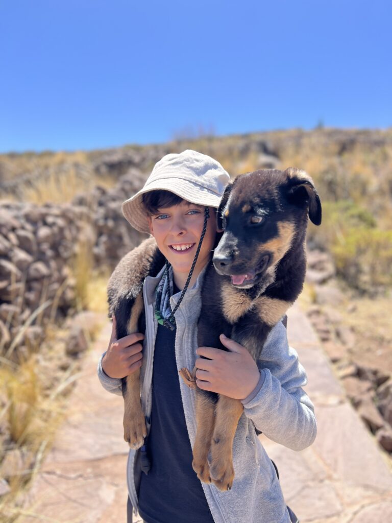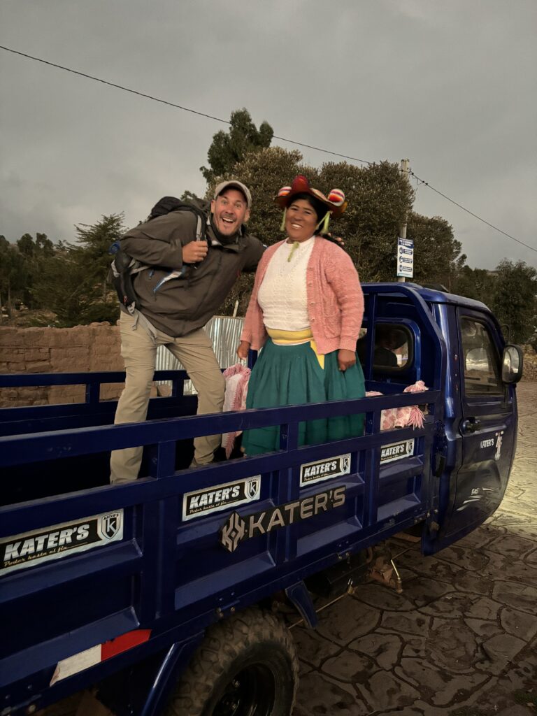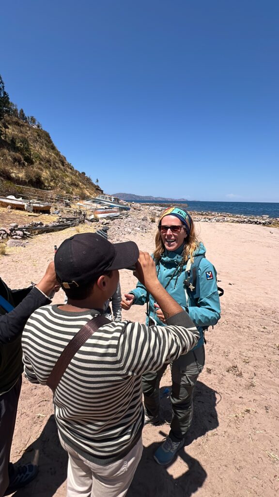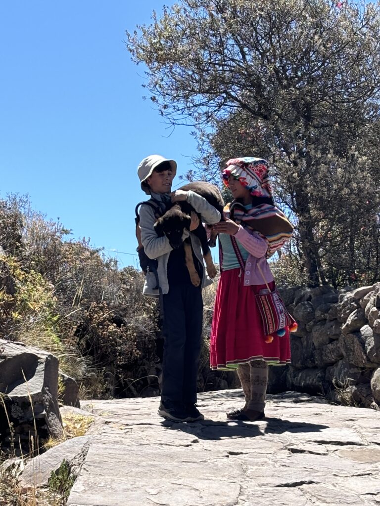 Pourtant, ce n’est pas la fatigue que Myriam dégage, mais une joie de vivre incroyable. Elle respirait le bonheur. Elle s’est d’ailleurs très vite entendue avec Célian : ils ont joué ensemble au volley, ont ri aux éclats… et se sont même relayés pour porter le petit chiot Bobby lors de l’excursion à Taquile. Un moment simple et touchant, mais inoubliable.