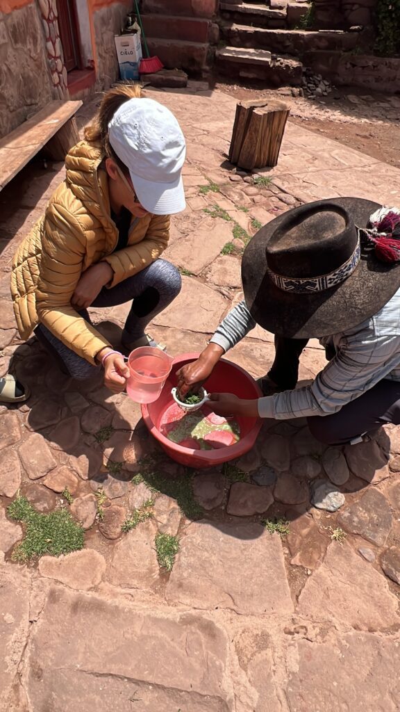 Un autre moment marquant : la découverte du chucuto, une plante locale utilisée comme shampoing naturel. C’est le secret des magnifiques cheveux noirs des femmes péruviennes… sans un seul cheveu blanc. J’ai eu droit à un atelier et j’ai pu l’essayer : magique ? Non, je dois toujours lutter contre mes cheveux blancs.