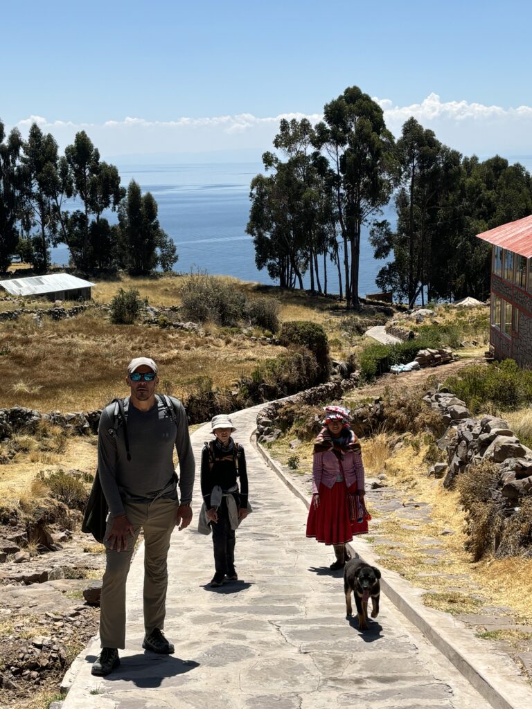 Nous aurions pu choisir de rester sur l’île touristique de Taquile, mais nous voulions autre chose. Alors on emprunte un collectivo direction Llachón, un petit village au bord du lac. Là, nous sommes accueillis comme de la famille par Luis (el padre), Antonia (la madre) et leurs enfants : Petit Luis, Myriam, Maria et Christian.