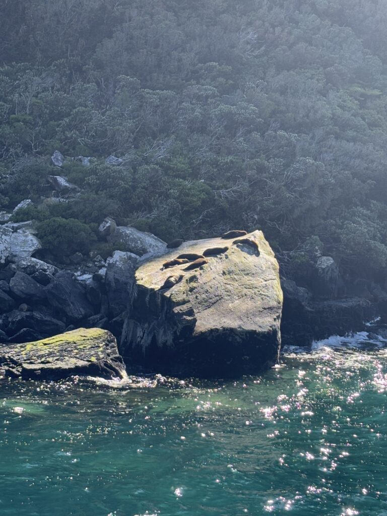 pour une croisière au cœur des fjords (16 kms de long), sous un soleil presque miraculeux dans une région qui compte près de 250 jours de pluie par an. Les cascades Lady Bowen Falls (162 m) et Stirling Falls (155 m) se jetaient dans l’eau avec fracas, tandis que les dauphins accompagnaient le bateau et que les otaries à fourrure se prélassaient sur les rochers. Un moment unique, magique.
