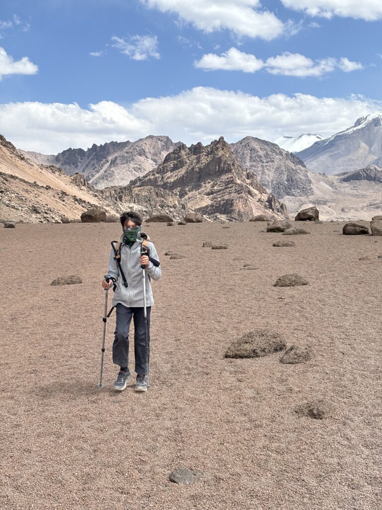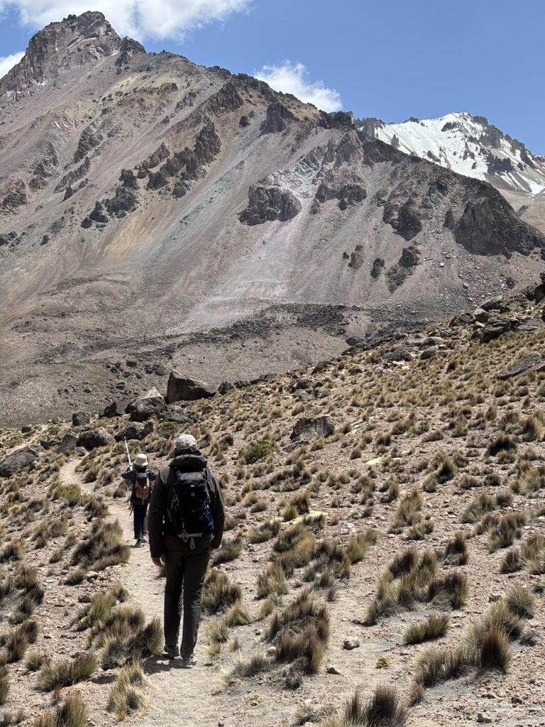 Mais ce matin, l’ascension est plus rude pour Célian et moi. Quelques maux de tête se font ressentir malgré les précautions prises contre le soroche, le mal d’altitude. Nous sommes fatigués, mais nous avançons, pas à pas, savourant chaque instant de ce décor grandiose.