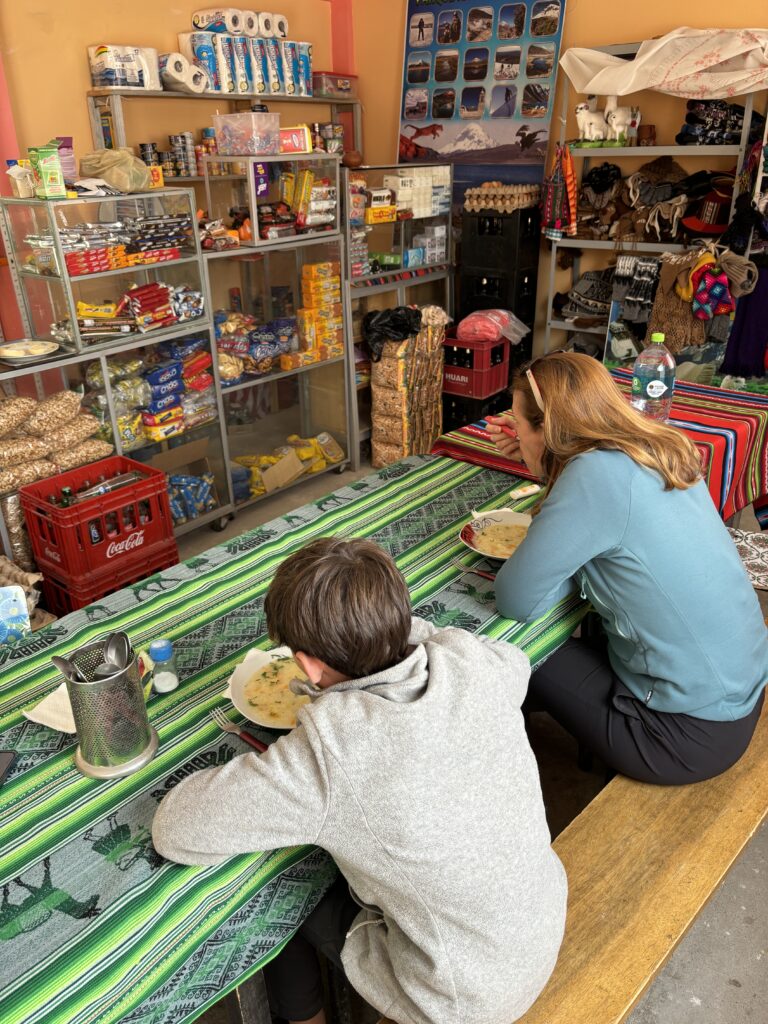 Ici, les tiendas font tout : épicerie, restaurant et lieu de vie. Nous en avons fait notre cantine, y rencontrant peu à peu tous les membres de la famille. Des plats simples, cuisinés maison, de la chaleur, des sourires, et cette richesse humaine incroyable qui contraste avec la pauvreté apparente.